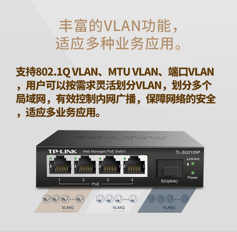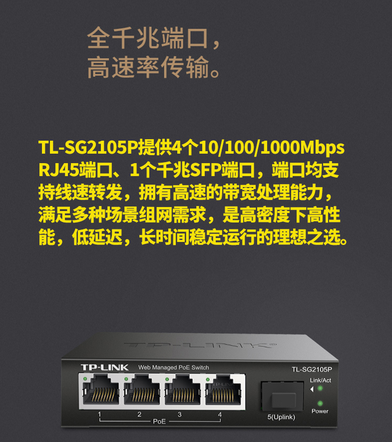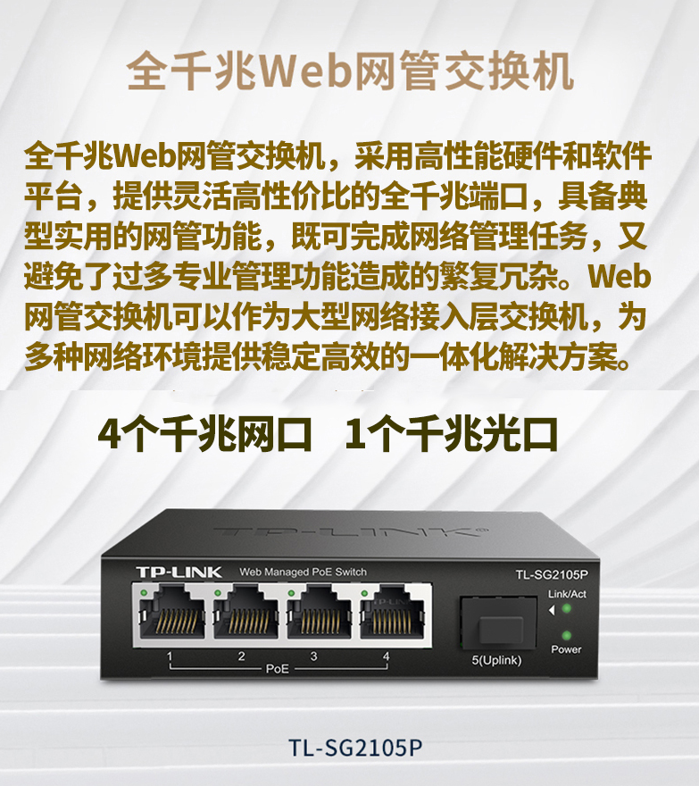 以太網(wǎng)交換機(jī)普聯(lián)/TP-LINK企業(yè)級網(wǎng)管型POE供電5口千兆TL-SG2105P/臺