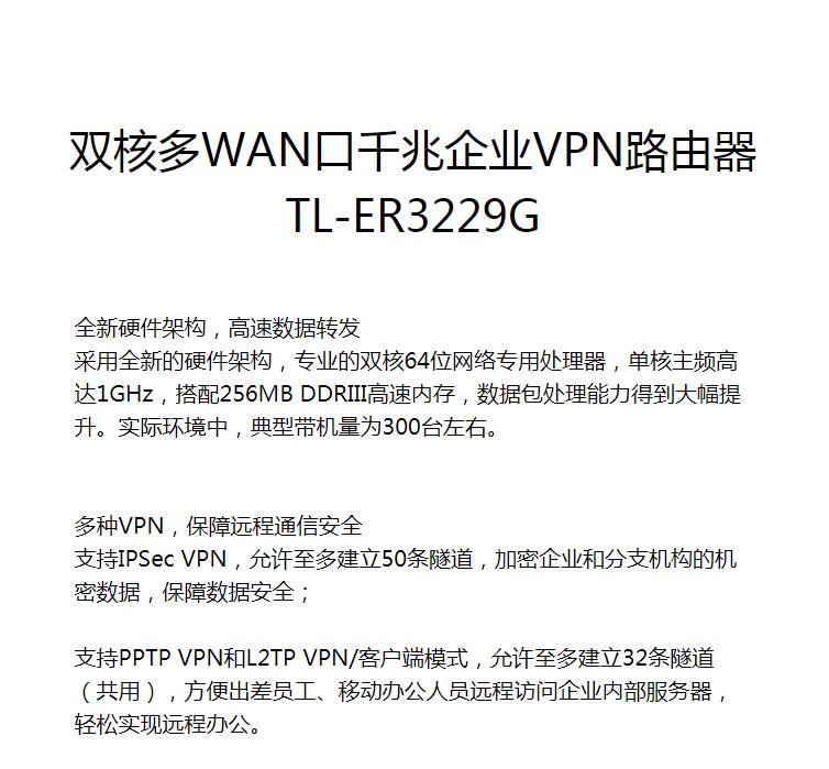 路由器普聯(lián)/TP-LINK雙核多WAN口千兆企業(yè)VPN路由器TL-ER3229G/臺(tái)