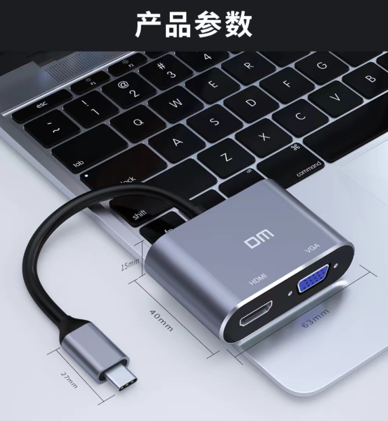 集線器大邁/DM TYPE-C轉(zhuǎn)HDMI+VGA二合一 集線器CHB016/個(gè)