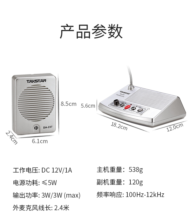 得勝/TAKSTAR有線雙向擴(kuò)音機(jī)雙麥大音量擴(kuò)音器銀色DA-237/臺(tái)