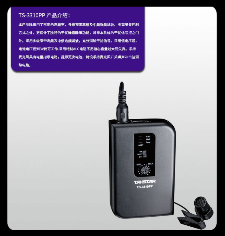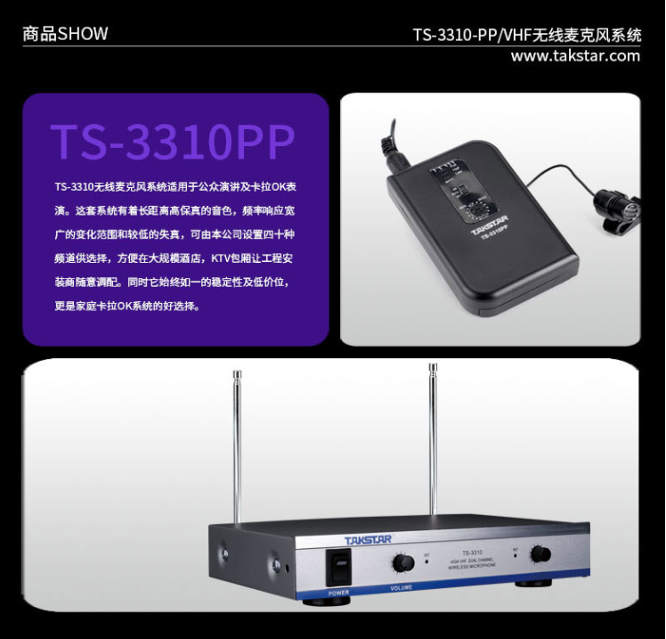 麥克得勝/TAKSTAR無(wú)線麥克風(fēng)一拖二無(wú)線話筒 2領(lǐng)夾 黑色標(biāo)配 TS-3310PP/臺(tái)