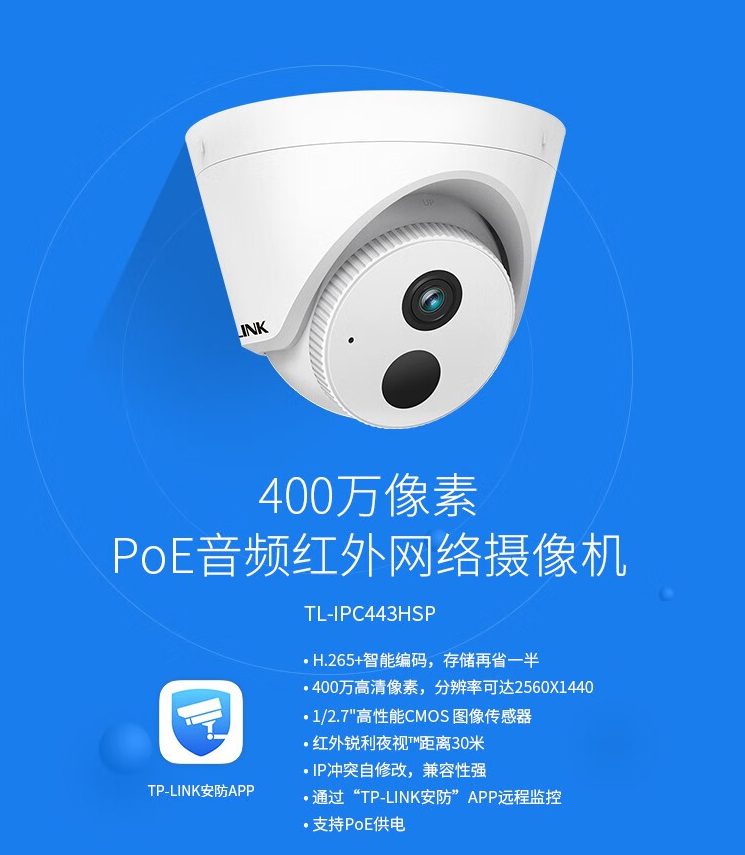 監(jiān)控攝像機普聯(lián)/TP-LINK紅外夜視拾音半球 有線監(jiān)控 高清夜視TL-IPC433HSP/臺