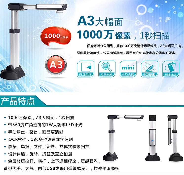 像素(高拍儀)  :   1000W