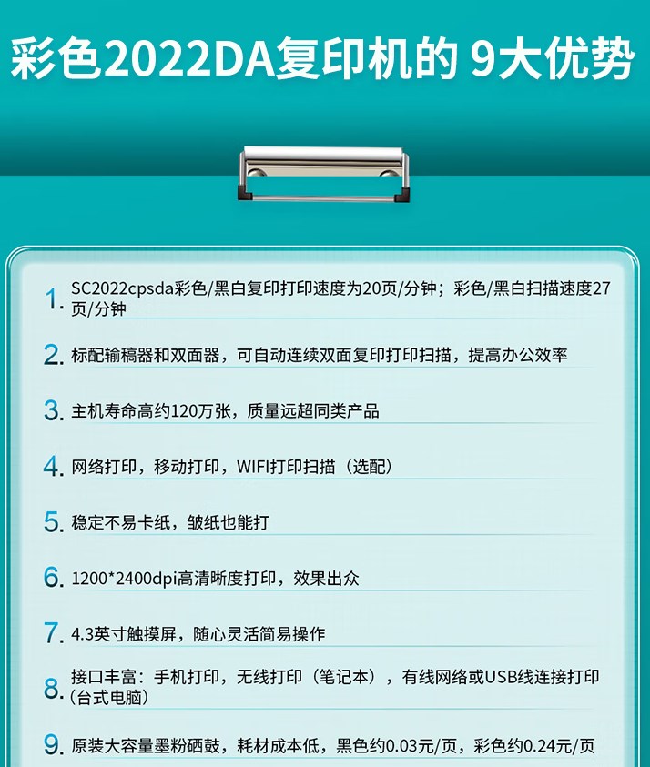 彩色首張復印時間  :   10