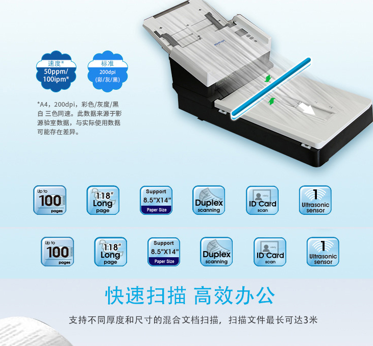 ADF彩色雙面掃描速度(A4,200dpi)  :   無
